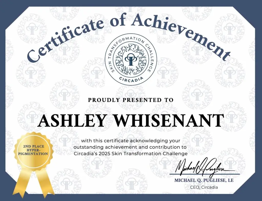 Ashley is a multi-award-winning skincare specialist, earning the “Best of Florida” title in 2023, 2024, and 2025—an honor reserved for just 10% of businesses in the state. In 2025, she placed 2nd globally in Circadia’s Skin Transformation Challenge for Hyperpigmentation, competing against experts from 140 countries. A Circadia Partner since 2021, Ashley holds advanced certifications in facial mixology, dermaplaning, anti-aging, chemical peels, and oncology skincare.
